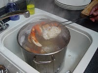 During a recent visit to British Columbia, Pauline (Kern's sister) and Rick demonstrated how to clean and prepare a west coast specialty - British Columbia Dungenous Crab. Kern & Rick visited a local market and purchased two large, live Dungenous crabs. Rick continued to demonstrate how to clean and cook the crab. Pictures are worth a thounsand words, so please see the process in the pictures above. Eating the crab needed very little instruction - the dinner table was very quiet while we enjoyed this west coast delicacy. Thank you Pauline & Rick!!!